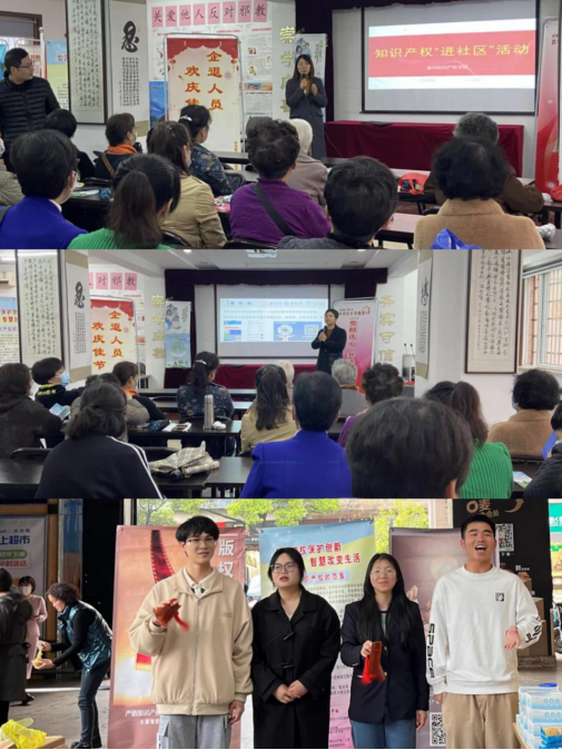 2023年3月24日,国家中小微企业知识产权培训(温州)基地进入矮凳桥社区开展“知识产权进社区”系列活动。通过专业教师以及知识产权管理专业同学们的细心讲解,居民们逐步了解了知识产权的基本知识,加深了社区居民对知识产权的印象。
