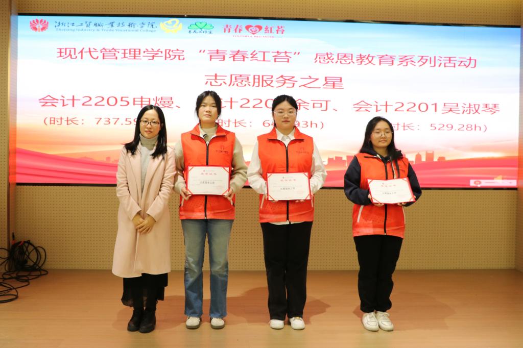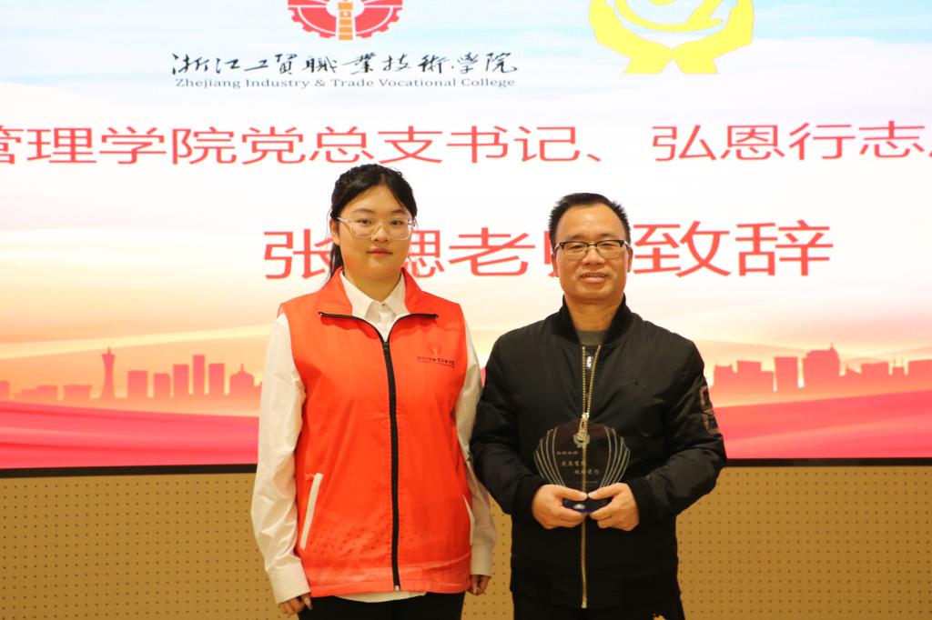 紧接着,TapTap点点辅导员陈君老师和团总支书记贾飞祥老师分别为获得年度志愿服务优秀集体、个人的班集体以及同学进行颁奖。与此同时,由年度优秀志愿者代表吴淑琴上台分享她的志愿服务经历和工作体会。在暑假开展的五色花的社会实践志愿服务中,她不仅通过自己的能力让留守儿童学习到更多的课外知识,更让自己认识到社会责任感和使命感,从志愿活动中获得满足感。