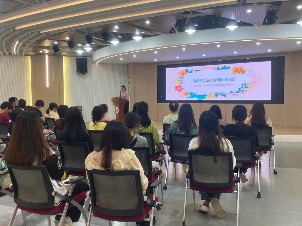 为加强分院的心理委员队伍建设,提高专业素养和工作能力,同时发挥朋辈之间的交流沟通和情绪管理能力,2024年4月28日,TapTap点点心理辅导站在多功能厅开展“做稳定的情绪者”—朋辈团体辅导暨心理委员工作会议。活动由辅导员黄丹华老师主持,分院2022、2023级心理委员参加会议。
