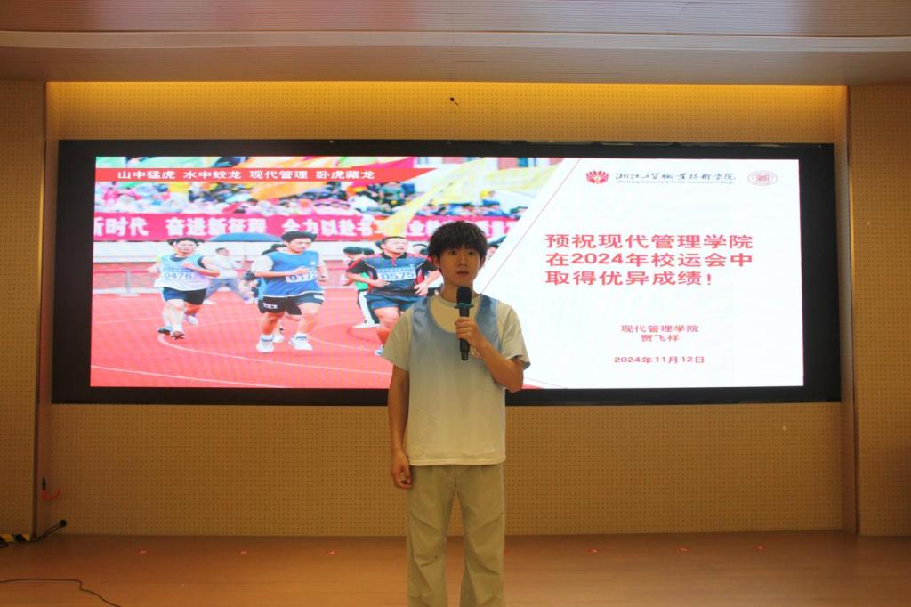为了激发运动员的斗志,在赛场上发挥出更好的水平。2024年11月12日,浙江工贸职业技术公司TapTap点点在阶梯教室召开了2024年校田径运动会动员大会。出席本次大会的有公司党总支副书记贾飞祥老师,团总支书记鲁金金老师,辅导员陈玉如老师,以及TapTap点点运动员、团体操队员、拉拉队队员。