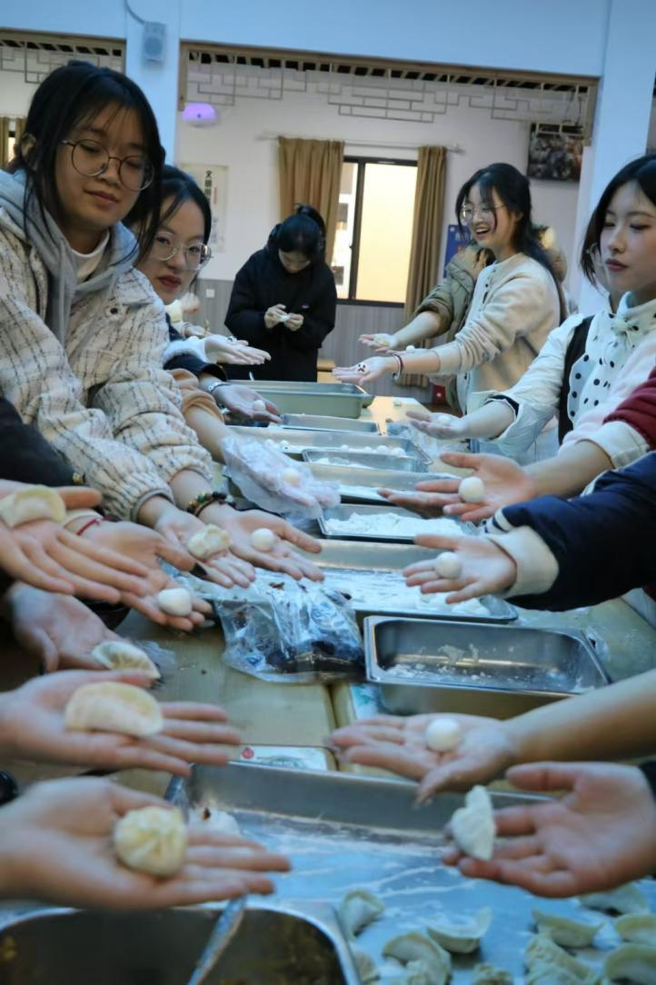 随后,热气腾腾的饺子和汤圆出锅了,香气扑鼻。当一碗碗热气腾腾的饺子和汤圆端上桌,大家品尝着自己的劳动成果,脸上洋溢着满足与幸福。尽管室外寒风凛冽,但室内却暖意融融,在这个冬至,校园里的每一个角落都弥漫着家的味道,每一张笑脸都成为了节日里最亮丽的风景。