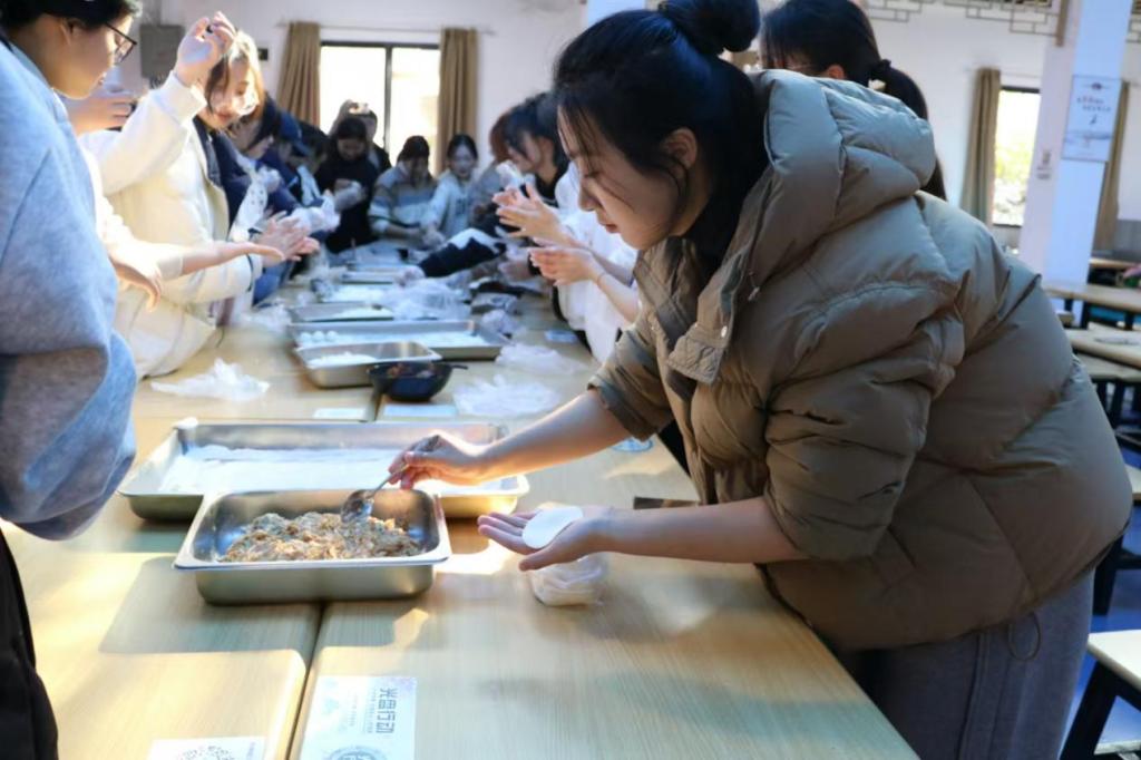 与此同时,一部分同学正在专注地研究如何让饺子的形状更加独特,他们尝试着各种包法,创造出了“月牙饺”“元宝饺”等多种样式;另外一部分同学则在为汤圆的馅料出谋划策,有传统的芝麻馅还有玫瑰豆沙,还有各种可爱样式的汤圆让人眼前一亮。