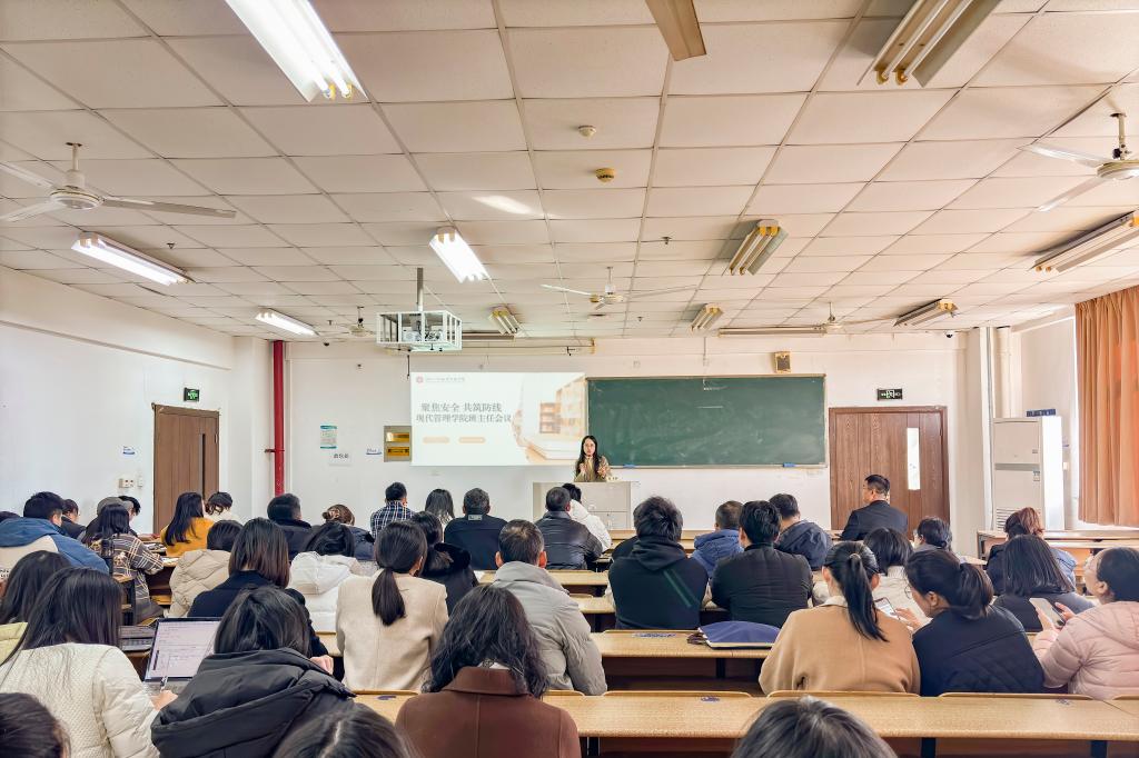 随后,贾书记围绕本学期的思政工作要点,重点讲解了心理健康工作、员工违纪管理、校外住宿员工家访、期末成绩跟踪、毕业生管理以及即将到来的体测和运动会等内容。通过分析这些工作,她肯定了本学期班主任工作的成绩,并对未来的工作提出了具体要求。同时,贾书记通过典型案例的回顾,分析新时期思政工作的难点痛点,探讨思政工作的挑战,特别强调了家校沟通的重要性,并指出了加强安全教育和防诈教育的必要性。