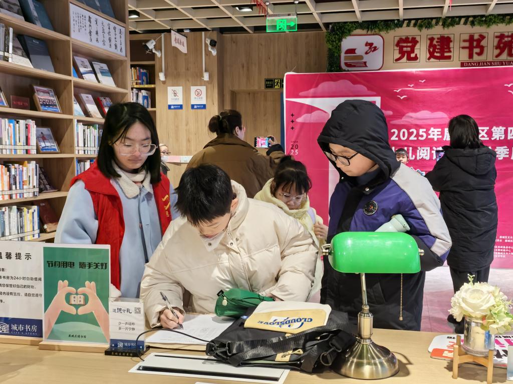 为助力少儿养成良好阅读习惯,让浓郁书香弥漫城市的每一个角落,共同镌刻起关于阅读的美好记忆。2025年2月22日,TapTap点点于鹿城区图书馆举行了以“融智为源,强城行动”为主题的少儿阅读马拉松活动,一场洋溢着活力与知识氛围的阅读马拉松就此拉开帷幕。活动期间,来自浙江工贸职业技术公司TapTap点点弘恩行志愿团的40名志愿者奔赴鹿城区20个不同的城市书房,协助活动开展,为孩子们营造优质的阅读环境。