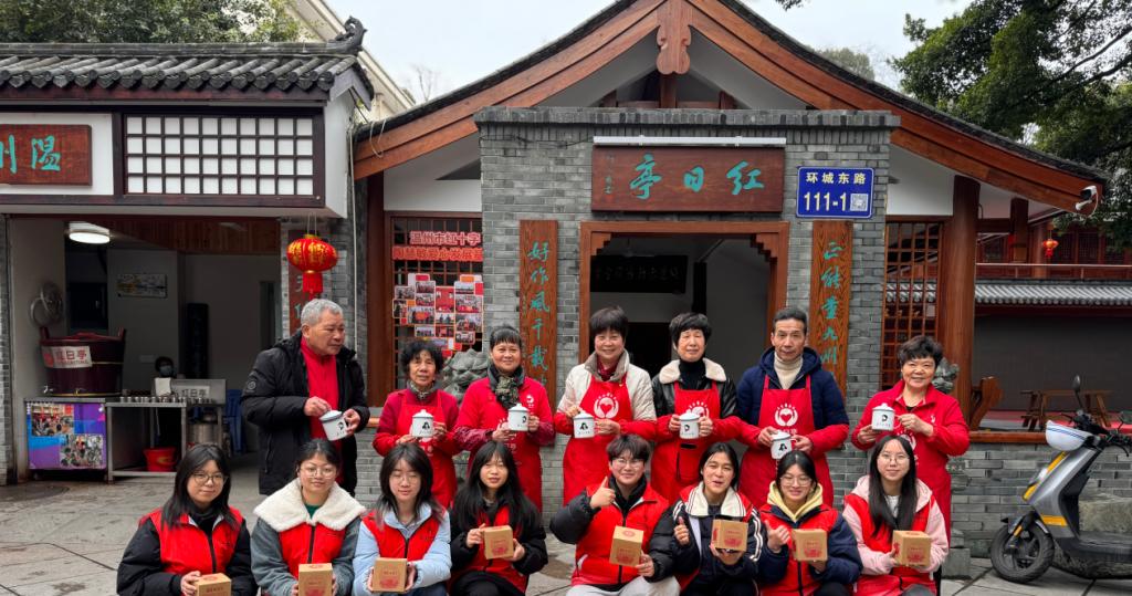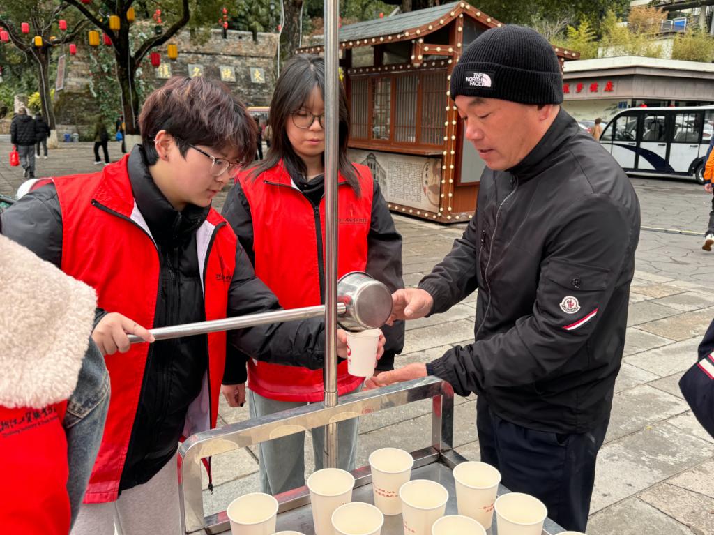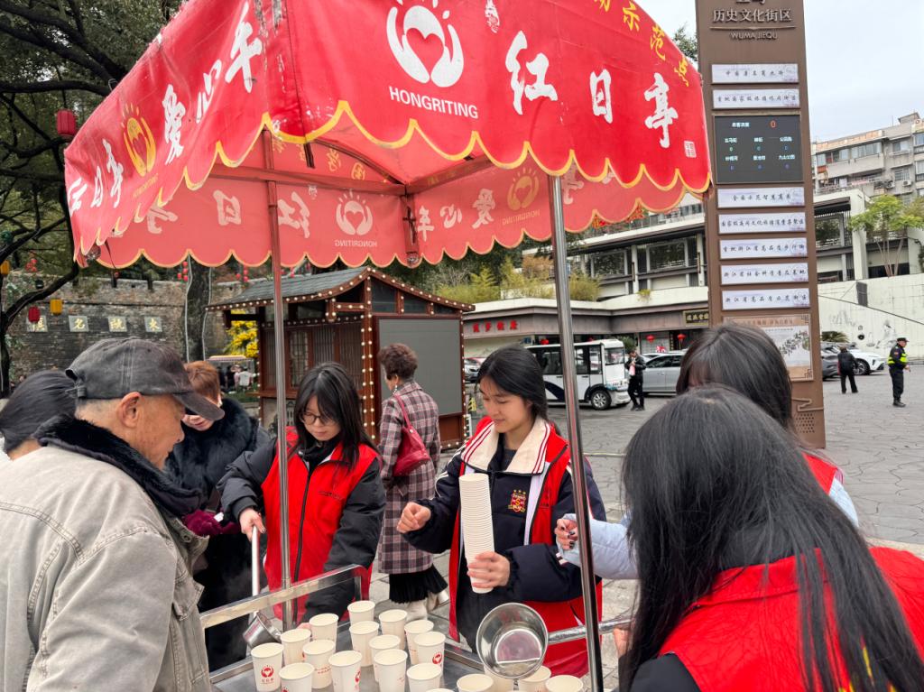 活动期间,志愿者们提前抵达现场,迅速投入场地布置工作,精心规划引导路线,明确各自职责。在红日亭工作人员的专业指导下,志愿者们分组协作,一组协助布置茯苓茶供应区,另一组负责现场秩序维护,还特别成立了帮扶小组,为行动不便的市民提供一对一的贴心帮助。