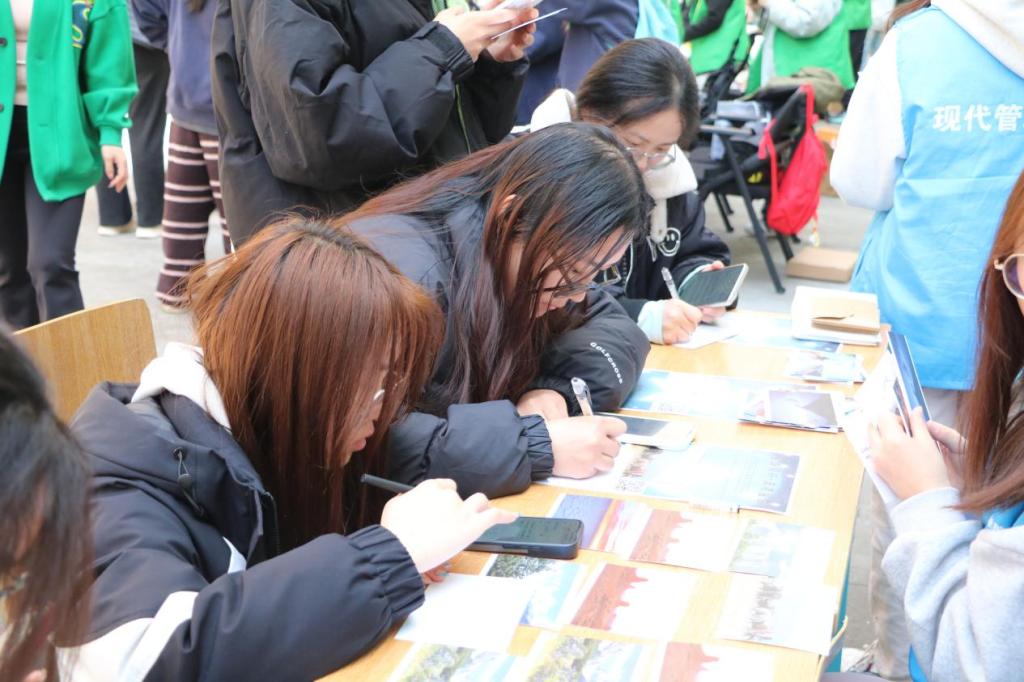 在“星语心愿”明信片书写环节,同学们纷纷拿起笔,在明信片上认真写下对孤独症儿童的真挚祝福与鼓励话语。以小小的明信片为桥梁,让文字化作传递理解与支持的纽带,让每一份爱与关怀都有了可以触摸的载体,实实在在地连接起了同学们与孤独症儿童的心灵世界。