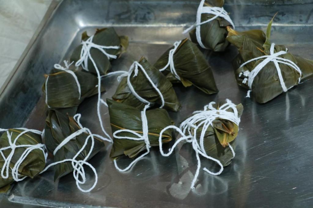 随着时间的推移,桌上的粽子越堆越高。活动结束后,食堂阿姨将这些饱含着大家心意的粽子进行蒸煮。不一会儿,整个场地都弥漫着粽子的清香。部分粽子被分发给参与活动的人员,让大家带回去与朋友一同分享这份节日的甜蜜。