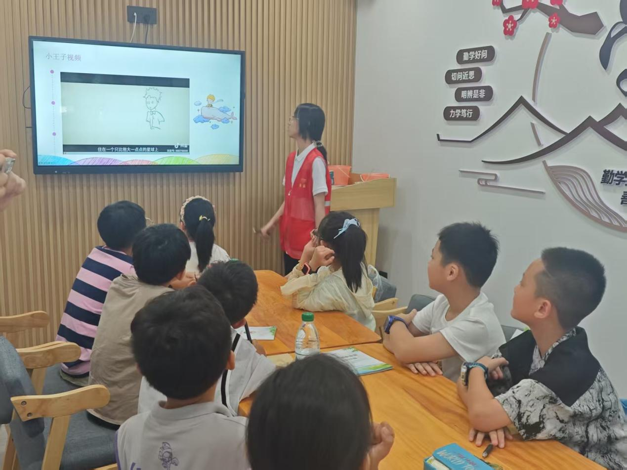 午后,阅读角变身“故事王国”,一场《小王子》阅读分享会温暖开场。志愿者轻柔讲述经典片段,带着大家重读小王子的星际旅行:玫瑰的傲娇、狐狸的“驯养”哲学、沙漠星空的浪漫…… 分享环节里,小朋友们踊跃发言:“我想当小王子的狐狸朋友!”“玫瑰其实很爱小王子呀。”大人们也感慨共鸣,在简单故事里重拾初心,书香与温情弥漫整个空间。
