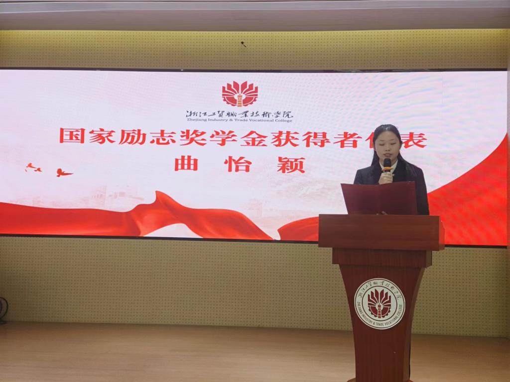 活动伊始,由国家励志奖学金获得者代表曲怡颖同学发言。她说今日的成就离不开各位老师的悉心关怀和同学们的帮助。从今往后不仅要在学习中增强实践创造能力,还要在课余生活中积极参与校内外志愿活动,以绵薄之力回馈社会。