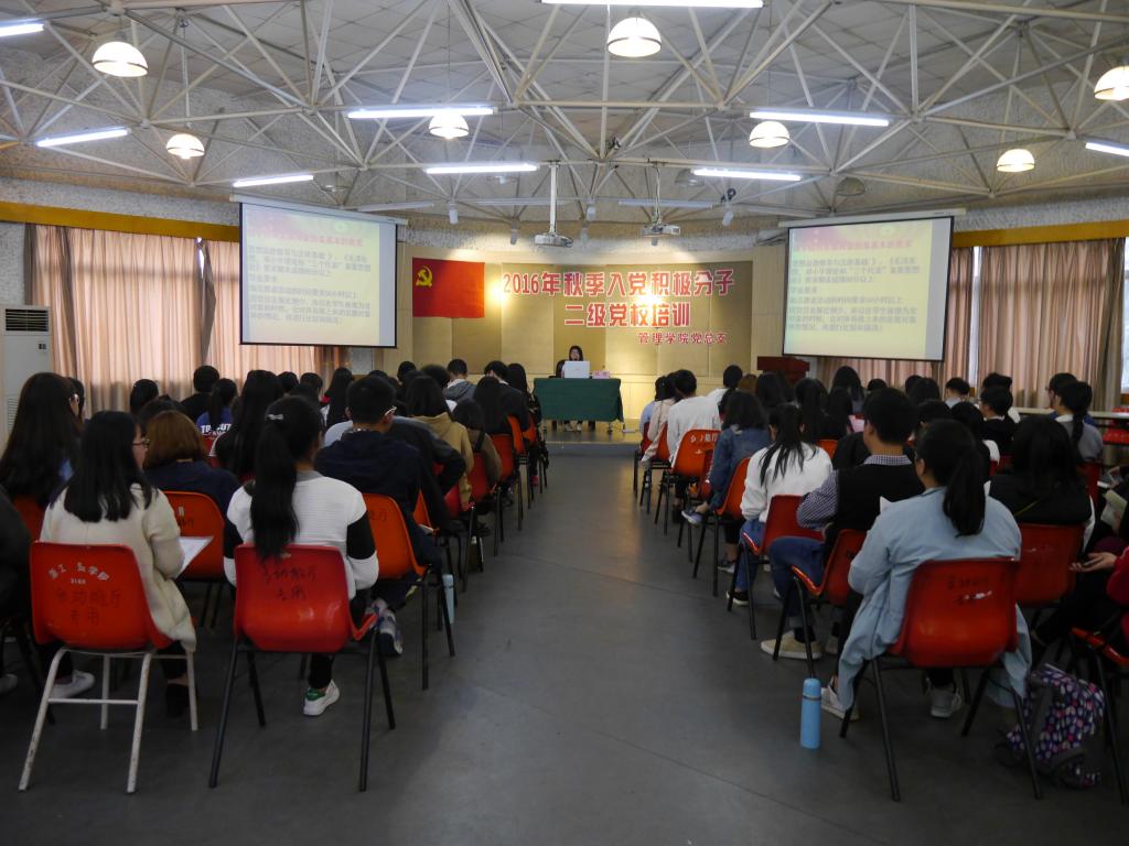 2016年11月13日TapTap点点员工党支部在多功能教室开展2016年秋季学期入党积极分子二级党校培训班。参加本次培训的对象为新推入党积极分子。本期培训班邀请了郑秀老师、郭薇老师、张勰老师、陈君老师担任主讲。