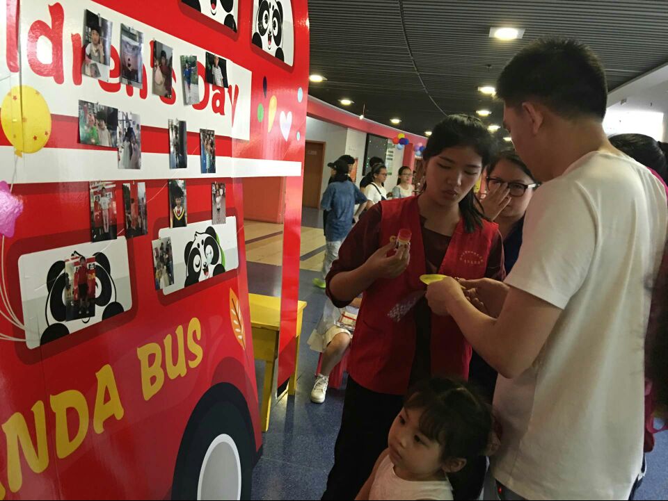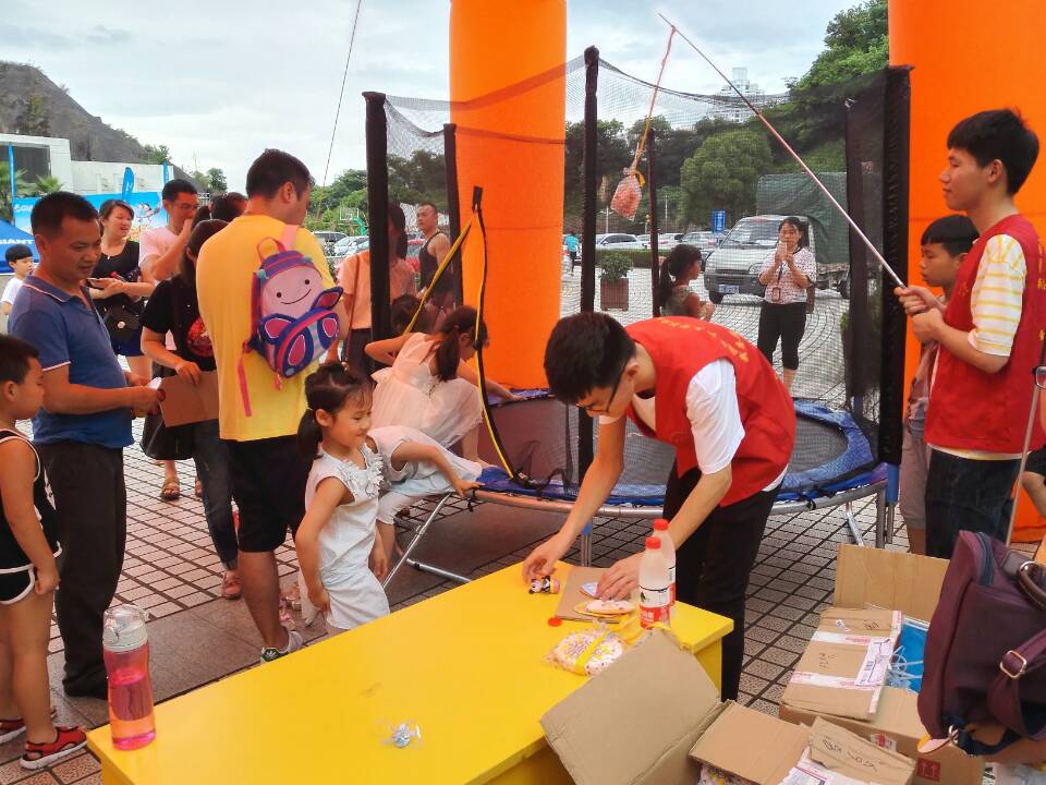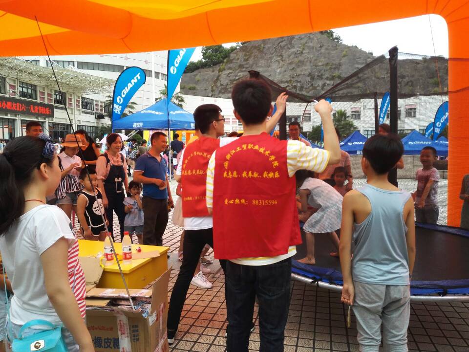 29日的活动同样精彩:有夹红豆比赛、水上吹乒乓球比赛、扔保龄球比赛,有奖猜谜问答比赛、筷子投瓶比赛,三口气吹灭四根蜡烛比赛等等。精彩的游戏和丰厚的奖品吸引了很多小朋友,也有不少家长与小孩子们一起参与到活动中。活动火热地进行着,和小朋友们一起玩着,闹着,分分钟都被小朋友的活泼可爱逗着。尽管天气闷热,大家都汗流浃背,可是却没有一丝疲惫。下午,活动接近尾声,我们把剩下的小礼品派给了小朋友们,和他们一起合影留念后便结束了我们的“共渡六一节,欢乐你我他”活动。