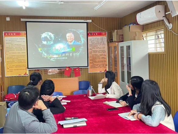 接着,以习近平总书记提出的学习要求,在场党员学习要以黄大年同志为榜样,学习他心有大我、至诚报国的爱国情怀;学习他教书育人、敢为人先的敬业精神;学习他淡泊名利、甘于风险的高尚情操。学习会最后,教师党员们谈及学习心得:新时代牢记党员宗旨和“四有”好教师的标准,学习黄大年爱国、爱员工、善贡献的优秀品质,做好教师工作职责,用心培育优秀青年。