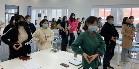 怀着感恩的心,全体党员一起学习《感恩的心》手势舞,通过手势舞表达每人需要一颗感恩的心,去感谢命运、自己和他人。活动最后,全体党员一起重温志愿词:尽己所能,不计报酬,帮助他人,服务社会,践行志愿精神,传播先进文化,为构建和谐社会贡献力量!