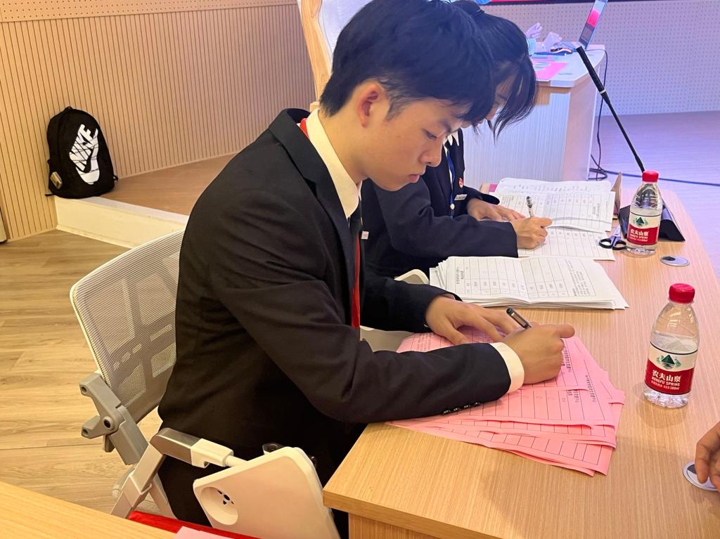 第三个环节是十名候选人们用PPT从自我介绍、工作情况、优势劣势以及未来展望等方面展开讲述,展现了个人党建中心一年以来的经历、收获以及对未来的展望。经过候选人们的精彩演讲后,计票和监票人员将以公正的态度进行计票、结票。
