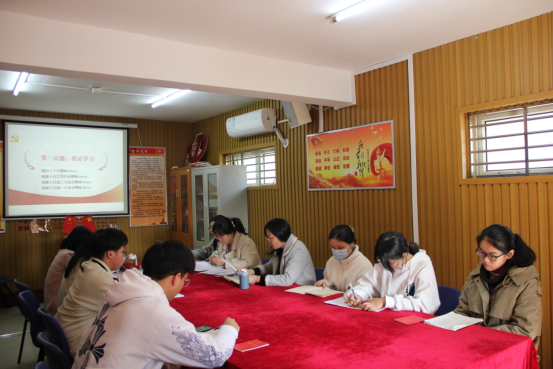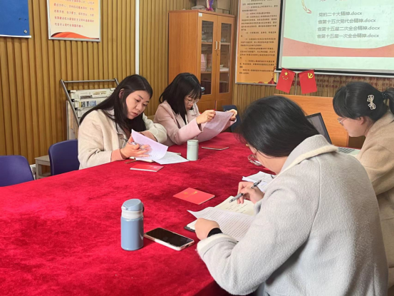 在组织生活会上,员工支部委员们认真参与理论学习。教师党员们逐字逐句宣读党的二十大精神、省第十五次党代会精神、省第十五届二次全会精神、省第十五届一次全会精神等文件内容,通过学习统一思想,凝聚力量。而后,党支部书记黄老师汇报上一年度组织生活会问题整改情况并汇报此次组织生活会所征求的群众意见和建议。接着支部教师党员对照问题,开展批评与自我批评。会上作为党总支列席人员,朱观娟老师作总结讲话,朱老师肯定了员工支部工作,也希望员工支部在创新活动形式、发挥先锋作用上继续努力。最后支部黄老师做出整改承诺。