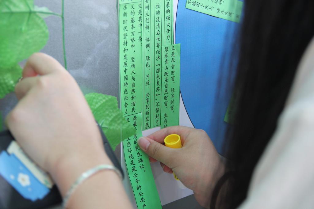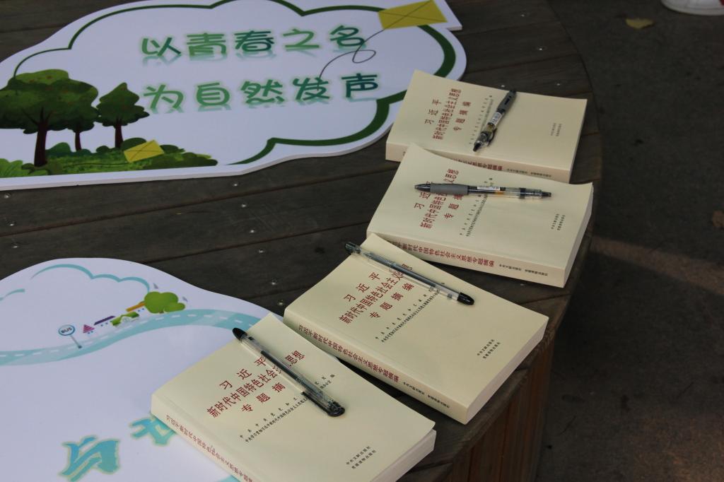 在聆听完张书记的环保主题教育微课堂后,同学们依次领读《习近平新时代中国特色社会主义思想专题摘编》第十二部分“坚持人与自然和谐共生”。通过本次领读,大家对生态文明建设都有了更进一步的认识。活动最后,同学们根据给出的语录题库进行语录配对,并在寝室楼下、食堂门口、校园的角角落落清理垃圾,用实际行动践行着环保理念,为建设美丽校园贡献自己的一份力量。