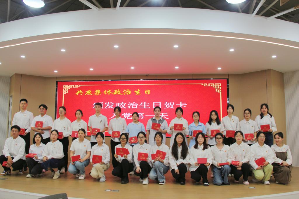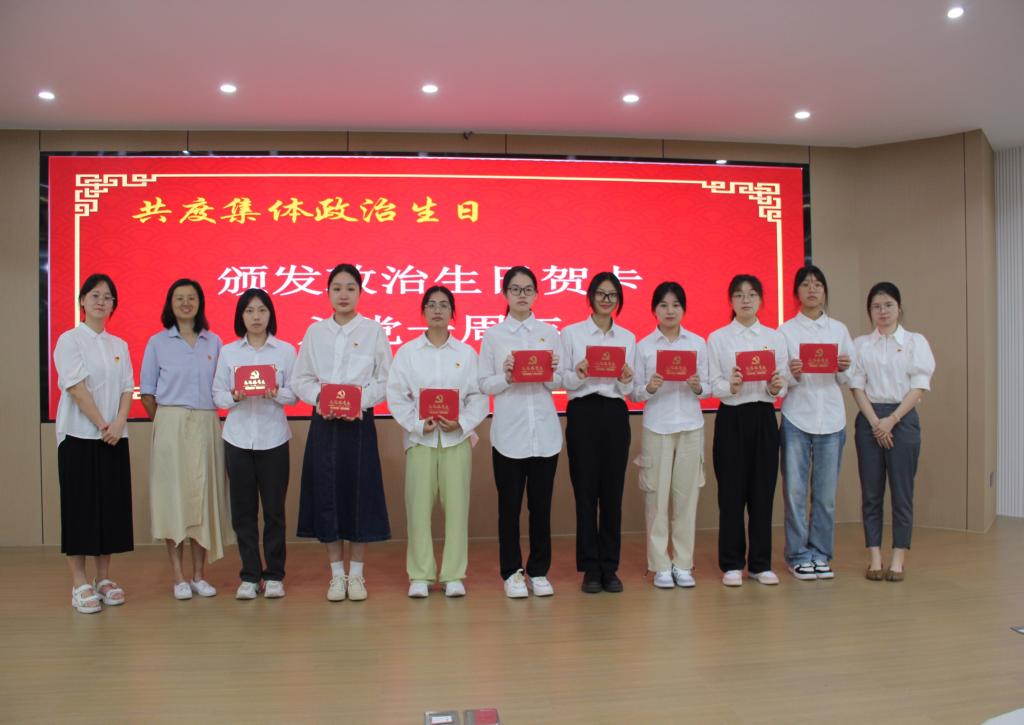 今天,支部转正了2020级的第一批预备党员,发展了2021级第一批预备党员。为了强化党员意识,此次会议融入仪式教育,开展集体政治生日。支部教师党员们给今天转正的毕业生党员们送上政治生日贺卡,送上毕业生党员礼物,希望她们能牢记本心又能重新出发。而后,毕业生党员们给新发展的党员们颁发政治生日贺卡并佩戴中国共产党党徽,寓意责任传递、薪火相传,也希望新发展党员牢牢记住入党初心。活动上,2023届的毕业生们党员们观看公司辅导员们用歌声传达祝福的歌曲视频《启程》和学弟学妹们带来的舞蹈《灯火里的中国》和歌曲《我们的明天》,祝福党员们能继续秉承校训,乘风破浪,不畏艰险,走出一个辉煌明天。