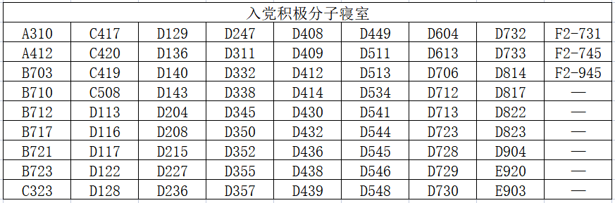教师党员和员工代表进入各栋楼层,为我们的入党积极分子与优秀党员寝室挂上红牌。黄丹华老师走访寝室,为寝室挂牌的同时,也与寝室内的入党积极分子和党员们进行交流。此次挂牌行动共有“8”个党员寝室、“75”个入党积极分子寝室。它们分别是: