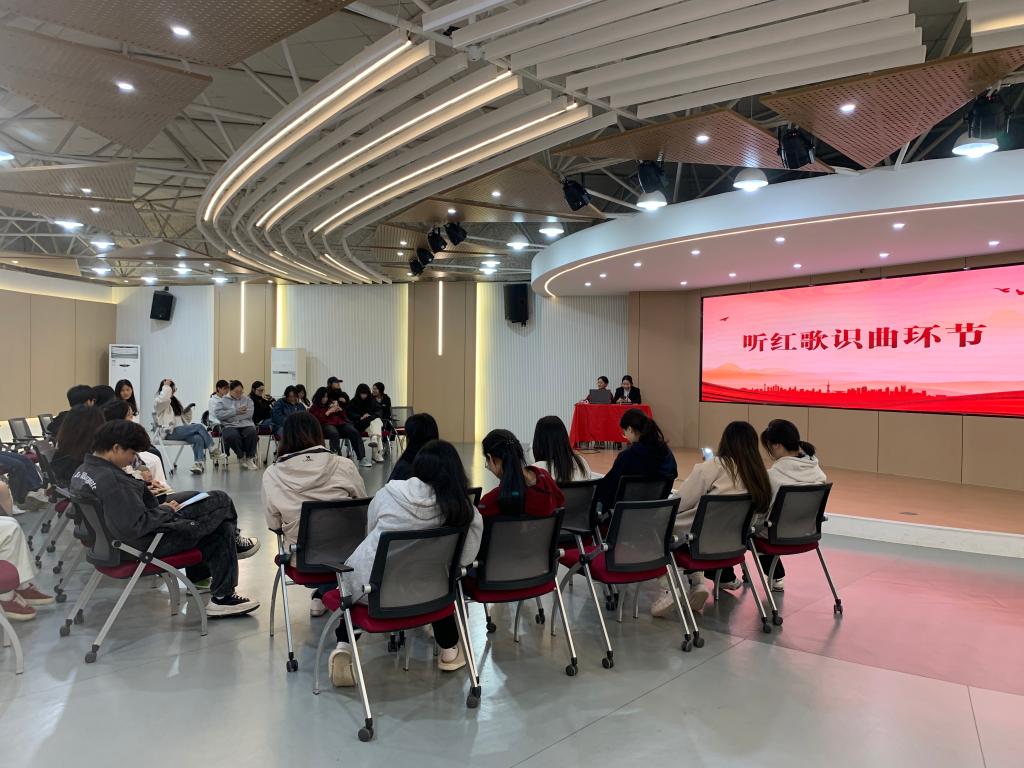 在主持人宣讲比赛规则后,每个小组各自派出参赛选手,进行题目抢答,题目分为单选题和填空题。竞赛内容涵盖了中国共产党发展历程各阶段的重要历史事件和思想理论。赛场上,大家你追我赶,对答如流,展示出较高的党史知识储备和过硬的心理素质,现场比赛氛围十分激烈。知识竞赛中也融入“听红歌识曲”环节。参赛选手凭借丰富的曲库储备能力,接唱红歌,唱响爱国爱党主旋律。活动最后,入党积极分子们写下对党的美好祝愿,并将写满祝福的纸张折成千纸鹤,祝福党和祖国繁荣富强。