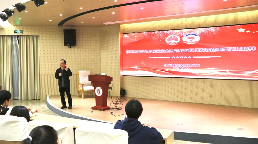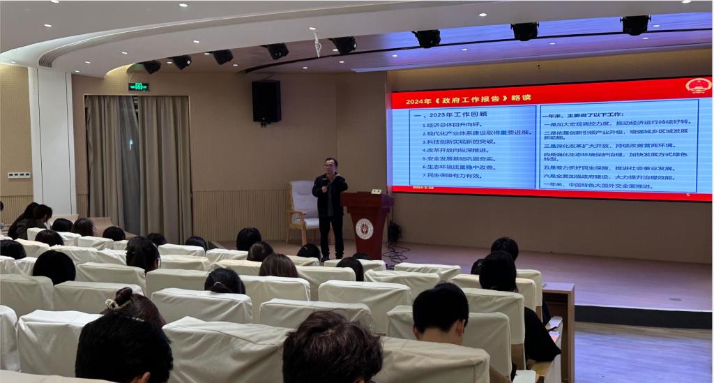 为深入学习贯彻习近平总书记在全国“两会”期间的重要讲话精神,推动政治理论学习走深走实,2024年3月28日晚上,公司党总支书记张勰老师在阶梯教室开展“学习习近平总书记在全国‘两会’期间的重要讲话精神”为主题的党课,分院全体员工党员和入党积极分子参与党课学习。