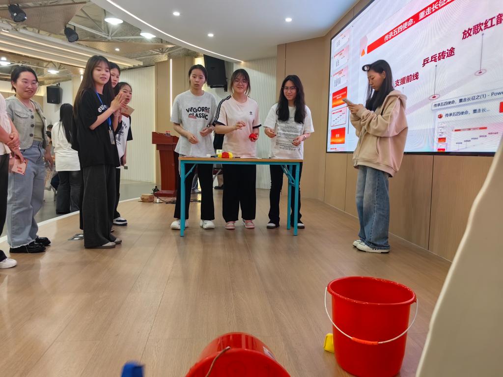 沉浸式体验了老一辈无产阶级革命者的奋斗历程,充分弘扬了伟大长征精神,进一步增强了入党积极分子间的凝聚力、向心力和战斗力,在主持人的带领下开展了“重传承五四使命·重走长征之路”趣味运动会。活动以长征为切入点,开展“长征之路”“支援前线”、“乒乓砖途”“放歌红韵”和“延安大会师”五个活动。活动中,大家心往一处想,劲往一处使,情绪高涨,气氛热烈,充分展现了入党积极分子们团结协作、奋力拼搏的良好精神风貌。以游戏的形式重走长征路,不仅是为了缅怀历史,追忆先烈,更是为了传承他们百折不挠,勇往直前的长征精神。通过活动,希望入党积极分子们铭记长征历史、传承长征精神,汲取奋进力量,为实现中华民族伟大复兴中国梦的新征程上勇毅前行。