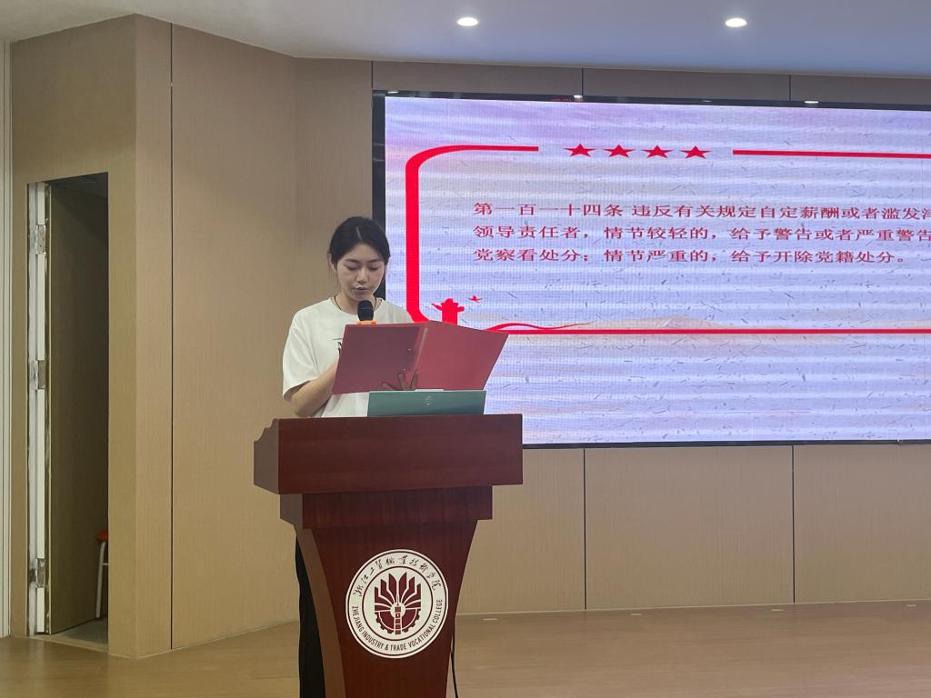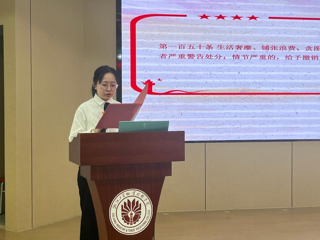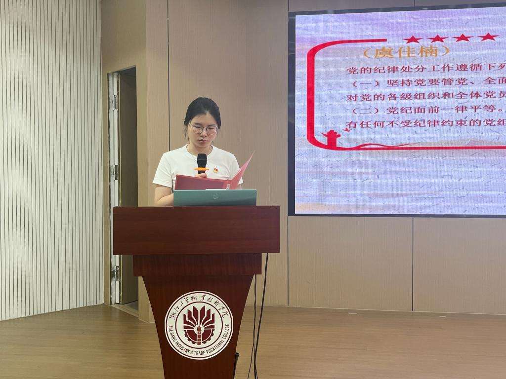 围绕党纪关键词,开展了“清风诵读党纪条例”活动。通过诵读党章党规党纪条例,营造风清气正的良好氛围,让党的纪律规矩入脑入心,成为全体党员的自觉遵循。诵读围绕《中国共产党纪律处分条例》等关键章节和重点条文作为诵读内容,活动中,党员代表们轮流上台,以饱满的热情、洪亮的声音,深情诵读党纪条例,一字一句间传递着对党的忠诚与对纪律的敬畏。通过诵读活动,党员们更加深刻地理解了党纪条例的精神实质和重要意义,增强了遵守纪律、维护纪律的自觉性和主动性。
