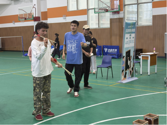 "玛纳斯传奇·越韵拼图"环节中,习近平总书记与新疆群众亲切交谈的照片被制作成56块拼图,寓意56个民族守望相助。来自新疆的同学边拼图边向同伴讲解民族服饰特色;"达瓦孜印象·浙风绘猜"游戏中,烤包子、大盘鸡等新疆美食与西湖醋鱼、龙井虾仁等浙江特产通过你画我猜的形式引发阵阵欢笑;"喀什古韵·西湖投壶"则巧妙融合了西域传统游戏与江南雅趣,维吾尔族员工祖姆热提∙奥斯曼在连续投中三箭后兴奋地说:"原来新疆投壶和浙江古代'射礼'这么像!"